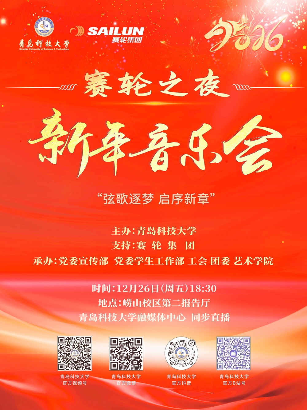 2026年新年将至,学校特举办“赛轮之夜”金沙集团1862cc2026 新年音乐会。本次音乐会由赛轮集团鼎力支持,众多师生与特邀嘉宾倾情表演。诚邀广大师生共赴艺术盛宴,喜迎新年到来!