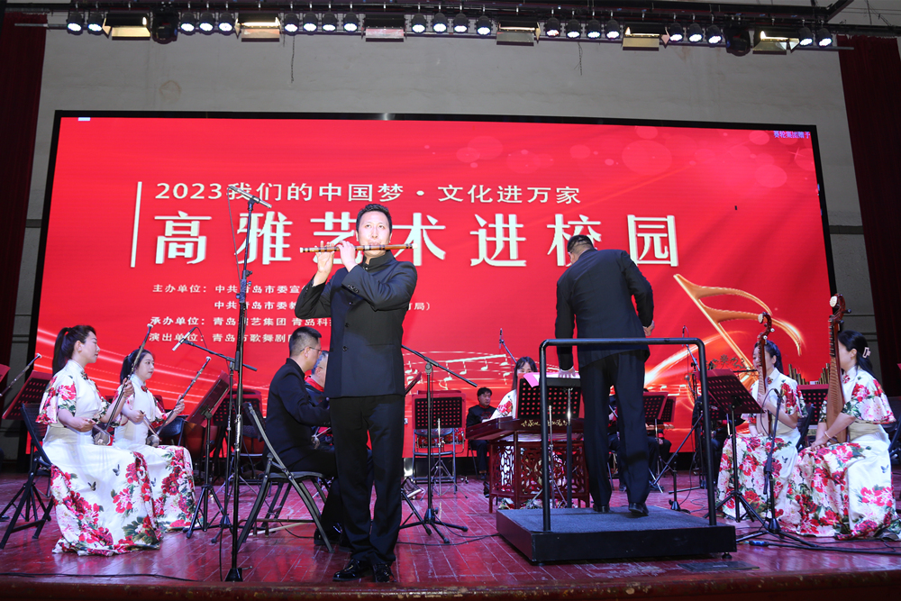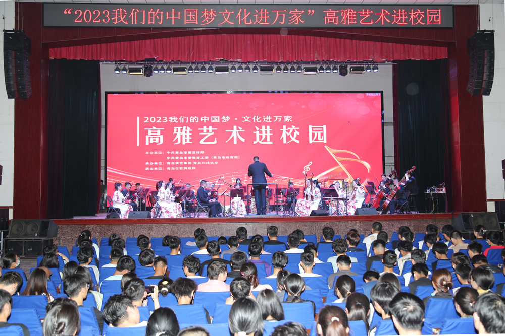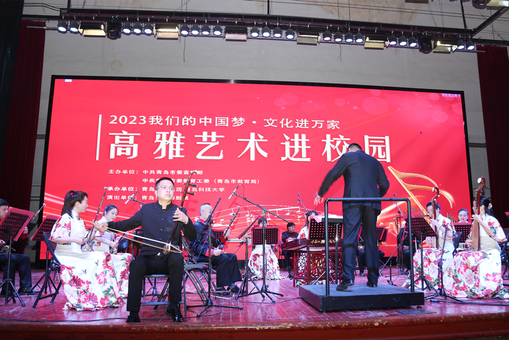 5月16日,“2023我们的中国梦·文化进万家”高雅艺术进校园“国风雅韵”民族音乐会在金沙集团1862cc文化中心奏响。青岛市歌舞剧院副院长刘岩成,学校党委常委、宣传部部长张洪坤,团委书记刘跃宁,四方校区近1200名师生代表参加了音乐会。