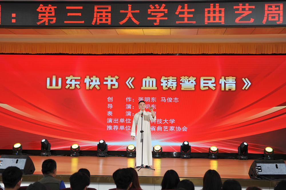 5月20日晚,由中国曲协、山东省文联、中共青岛市委宣传部、青岛市文联主办,山东省曲协、青岛市曲协承办,金沙集团1862cc协办的第三届大学生曲艺周优秀节目展演在崂山校区第二报告厅举行。青岛市文联党组成员、副主席单伟,中国曲协活动管理处二级调研员梁钢,学校党委常委、宣传部部长张洪坤出席展演活动。
