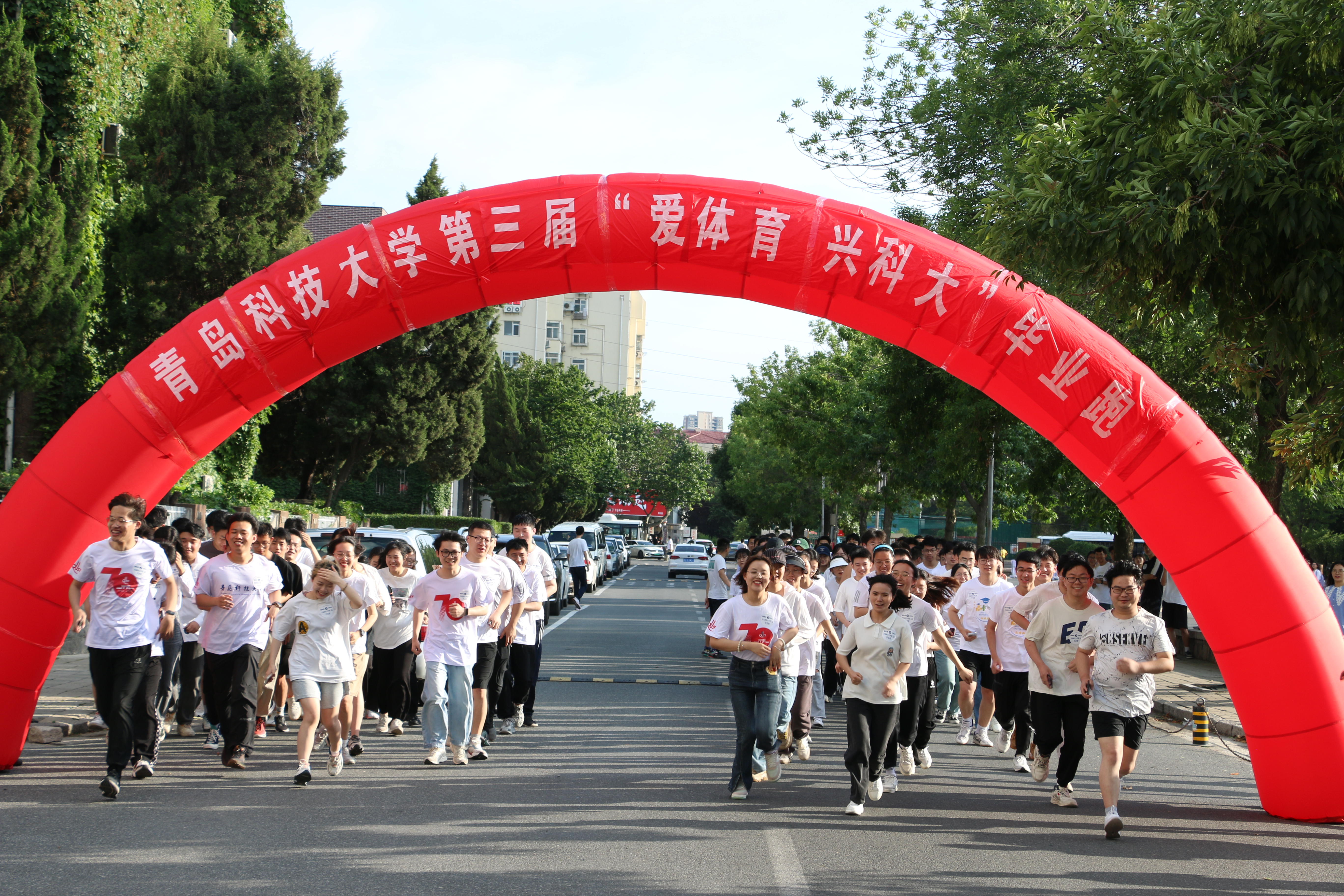 在崂山校区南苑运动场、四方校区小五四广场的起跑点处,毕业生们在“爱体育·兴科大”冲刺线上写下了对母校的眷恋和未来的憧憬,他们眼神坚定、充满朝气、蓄势待发。随着发令枪响,500余名毕业生按照既定路线,在“青春的赛道”上释放激情、挥洒汗水、奋力奔跑,跑出了科大青年团结向上的精神风貌和奋勇争先的“青春加速度”。活动结束后,毕业生们纷纷表示会将把在学校体育综合改革推进中练就的强健体魄、坚强意志融入到今后的工作生活中,让青春在奋斗中闪光。