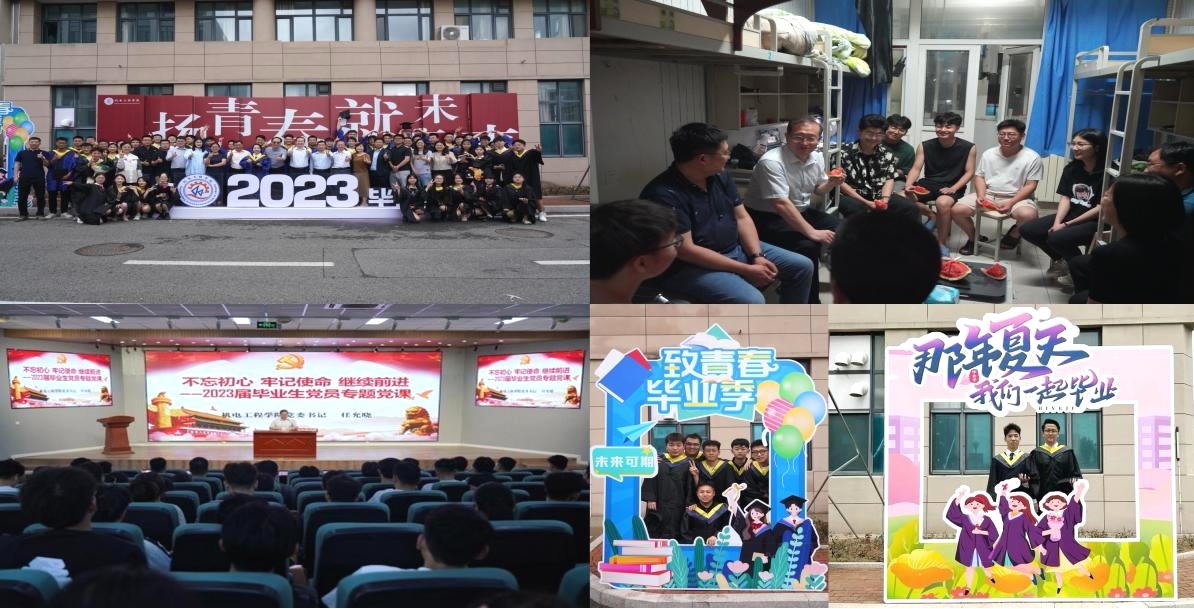 机电学院团委开展“机扬青春 就赢未来”毕业季系列活动。开展“与青年面对面”系列活动之学生骨干毕业生专场座谈会、“不忘初心 牢记使命 继续前进”2023届毕业生党员专题党课,勉励毕业生们发扬科大精神,践行橡胶品格、成就精彩人生。开展“毕业生寄语”、“机扬青春 电定未来”2023届毕业生座谈会,毕业生们畅所欲言积极为学院发展建言献策。开展“2023届毕业生最后一课”,引导青年学生以更加饱满的热情和昂扬的斗志投身中国特色社会主义事业。开展“我与母校合个影”毕业照片征集活动、“尺素情长 青春无悔”毕业拍照打卡活动,记录了毕业生的青春笑脸,留下了专属于毕业季的美好与感动。为1074名毕业生赠送校徽院徽,凝练在青科大求学的光“徽”岁月,刻下每一位毕业生的青春华“章”。