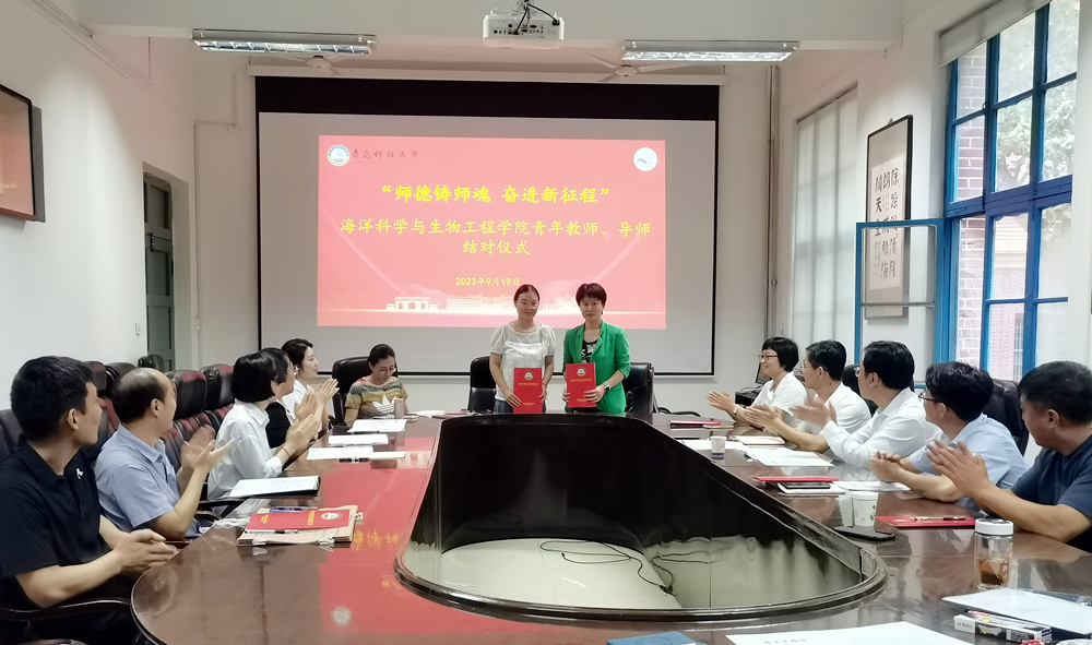 为深入学习贯彻党的二十大精神、学校第十一次党代会精神,按照学校第二十届师德建设月活动通知部署要求,进一步强化师德师风建设,着力抓好青年教师“育”的工作,9月19日,海洋学院“师德铸师魂 奋进新征程”青年教师、导师结对仪式暨青年教师专题培训会在四方校区一号行政楼第二会议室召开。学校党委教师工作部部长张洪坤出席会议并讲话。会议由学院副院长李昉主持。