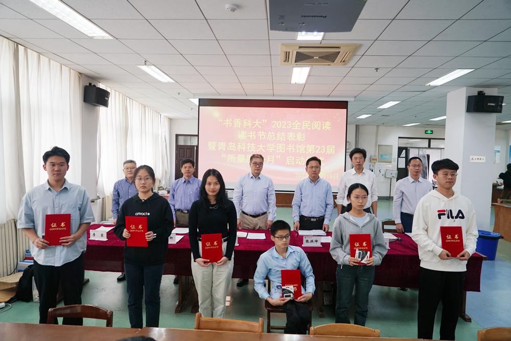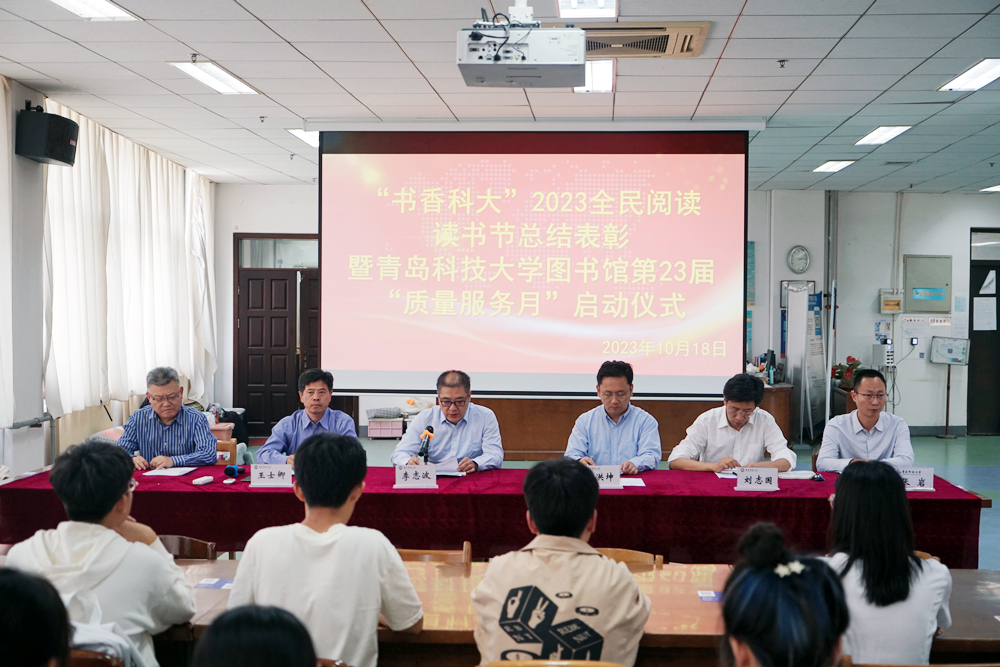 10月18日下午,“书香科大”2023全民阅读读书节总结表彰暨金沙集团1862cc图书馆第23届“质量服务月”启动仪式在崂山校区图书馆三楼期刊阅览室举行。学校党委常委、副校长李志波,党委常委、宣传部部长张洪坤出席仪式。
