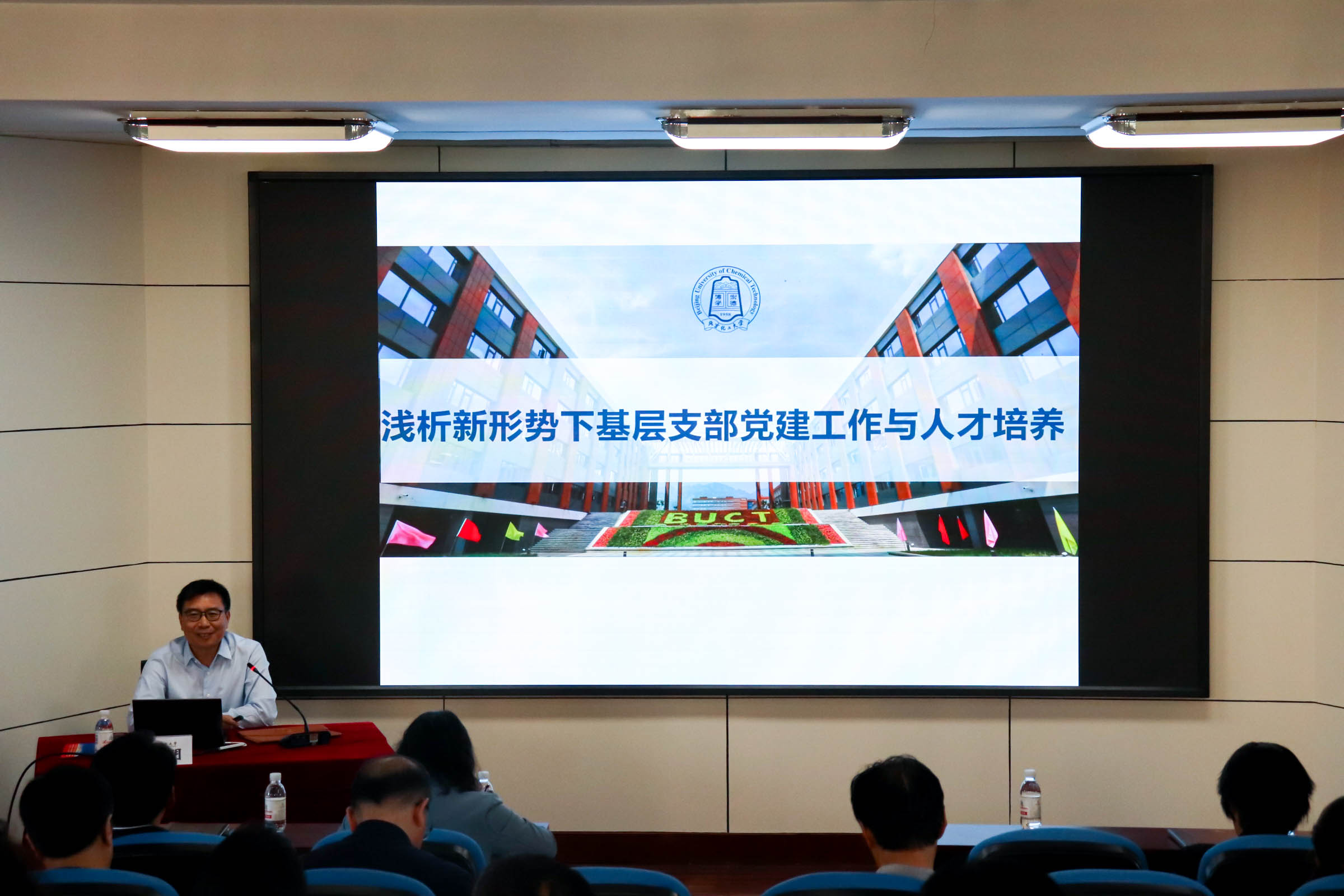 本次培训班邀请了北京化工大学田明教授以《浅析新形势下基层支部党建工作与人才培养》为题作专题辅导报告。他以北京化工大学先进弹性体材料研究中心党建工作的实践,向参训学员介绍了新形势下高校党建工作的任务、面临的问题以及北京化工大学先进弹性体材料中心在加强思想引领、建设一流团队、推进党建工作与青年教师成长、研究生培养、科学研究等中心业务工作有机融合方面的实践、探索及取得的成效。