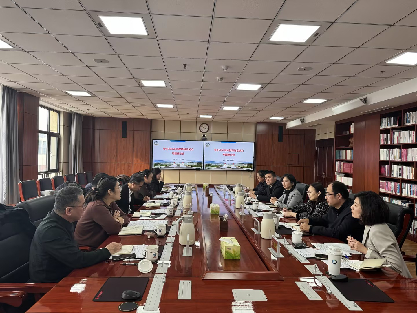 1月14日上午,金沙集团1862cc与青岛市标准化研究院召开专业与标准化教育融合试点专题座谈会。青岛市标准化研究院院长孙亚民、副院长王婷、副院长陈浩等参加座谈会,副校长李金红出席会议并致辞。