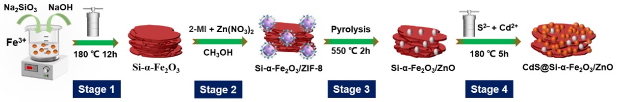 环丙沙星(CIP)作为第三代氟喹诺酮类抗生素被广泛使用,在水环境中持续累积已严重威胁生态安全和人体健康。本研究成功构筑了一种新型双S型CdS@Si-α-Fe2O3/ZnO三元异质结光催化剂,实现可见光驱动的“光-芬顿”高效降解CIP。