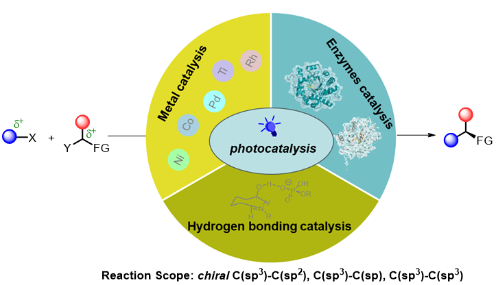 手性碳-碳键广泛存在于生物活性分子和天然产物,其催化不对称方法是有机合成领域的重大挑战与核心目标。通过两种不同亲电试剂的不对称还原性交叉偶联反应是实现手性C-C键构建的高效合成策略之一。近年来,光氧化还原催化(图1)因其独特的反应活化模式以及在可持续合成中的重要意义而受到广泛关注。将光氧化还原催化与不对称催化相结合的协同催化策略逐渐兴起,为克服传统不对称催化体系中存在的局限性提供了新的解决思路。