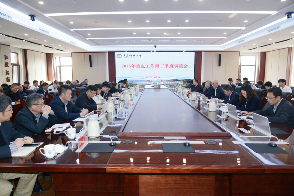 10月31日,学校2025年重点工作第三季度调度会在崂山校区赛轮会议室召开。学校党政领导班子成员杨天梅、陈克正、吕万翔、罗细亮、李萍、李金红、张洪坤出席会议。