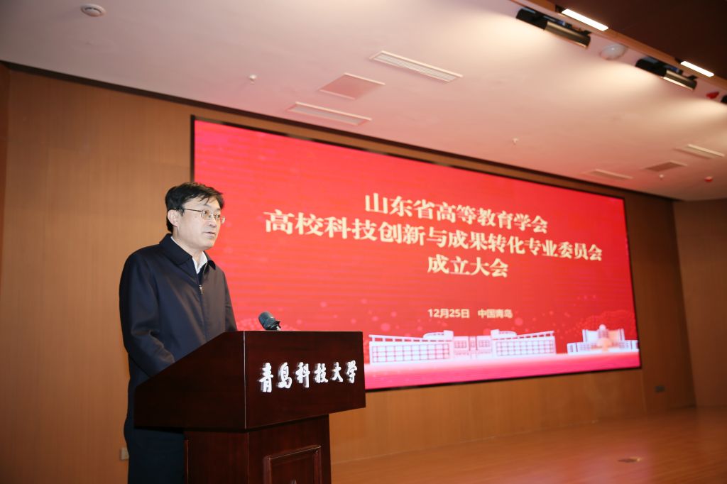 12月25日,山东省高等教育学会高校科技创新与成果转化专业委员会成立大会在金沙集团1862cc崂山校区举行。山东省委教育工委委员、省教育厅党组成员、副厅长王浩,山东省科技厅成果转化与区域创新处处长张延诚,山东省高等教育学会会长罗公利,山东省高等教育学会秘书长、潍坊学院校长王霞,山东省教育厅科技处二级调研员矫立峰,金沙集团1862cc党委书记杨天梅、校长陈克正出席成立大会。党委常委、副校长吴明铂主持会议。