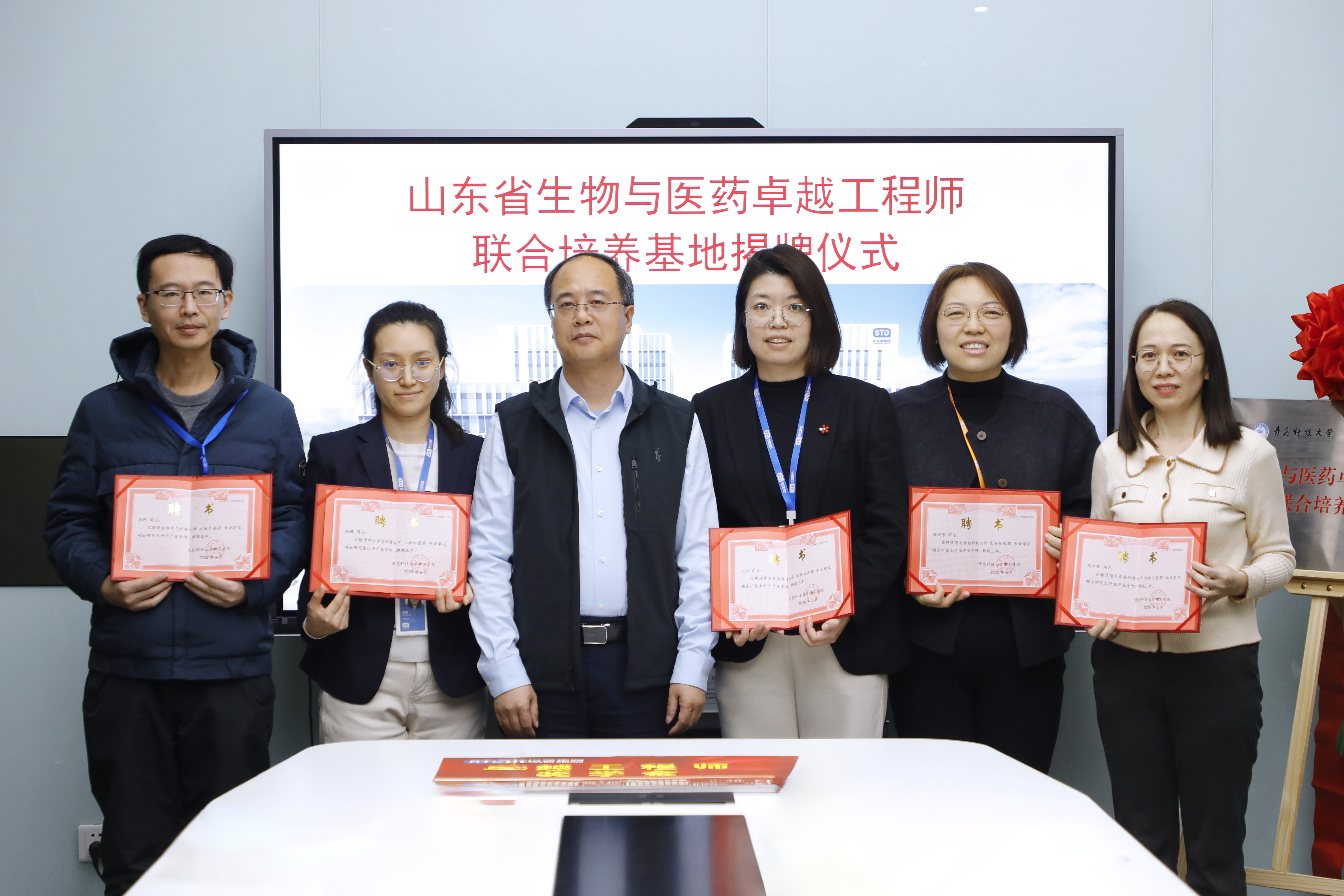 调研期间,杨天梅、韩连超共同为山东省生物与医药卓越工程师联合培养基地揭牌;罗细亮为5名行业产业导师颁发聘书;刘浩、生物工程学院院长顾玉超共同颁发斯坦德集团卓越工程师奖学金。