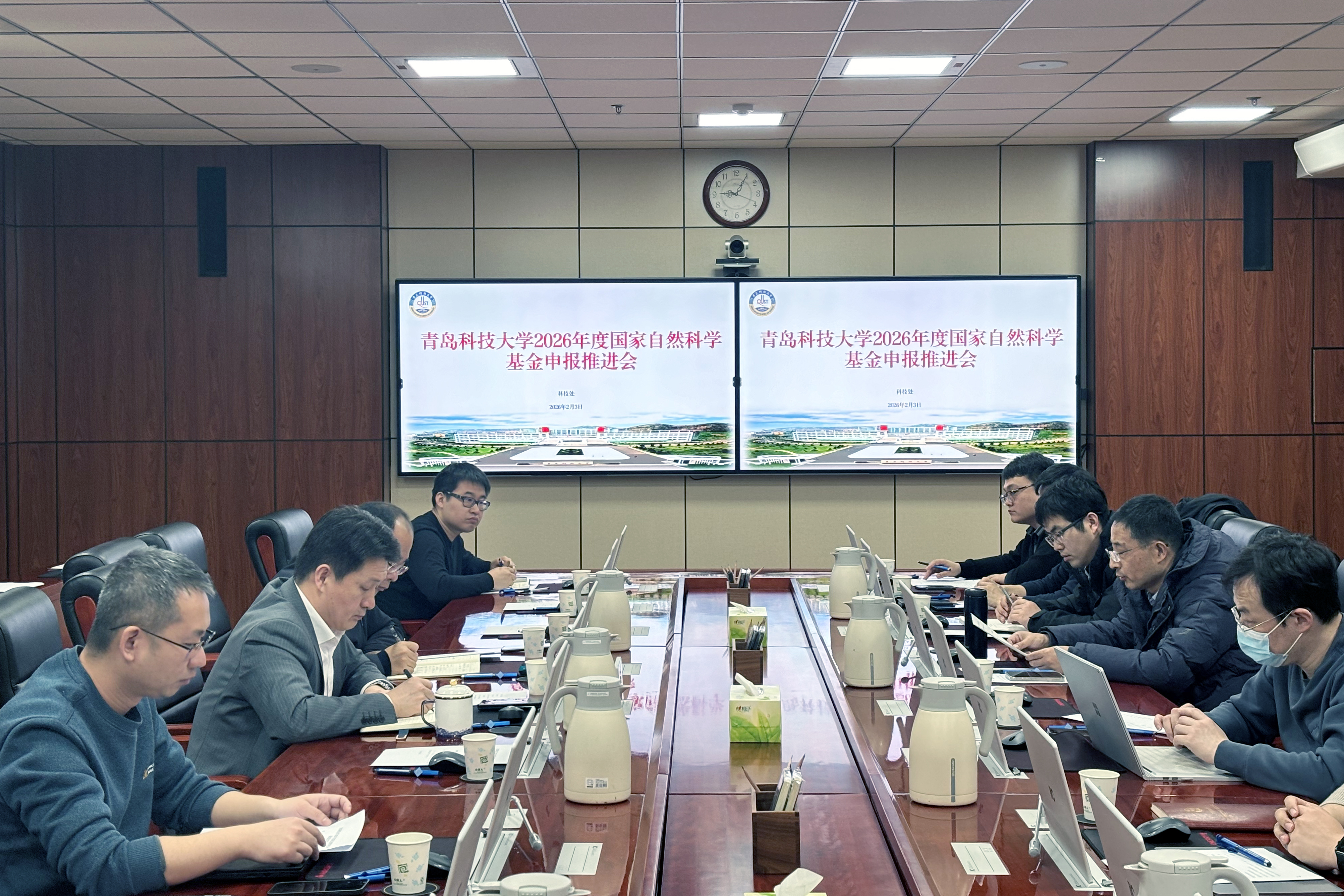为推动学校国家自然科学基金申报数量与质量双提升,2月3日上午,学校在崂山校区综合服务楼5015会议室召开2026年度国家自然科学基金申报推进会暨人才项目汇报会。党委常委、副校长吴明铂出席会议并讲话。