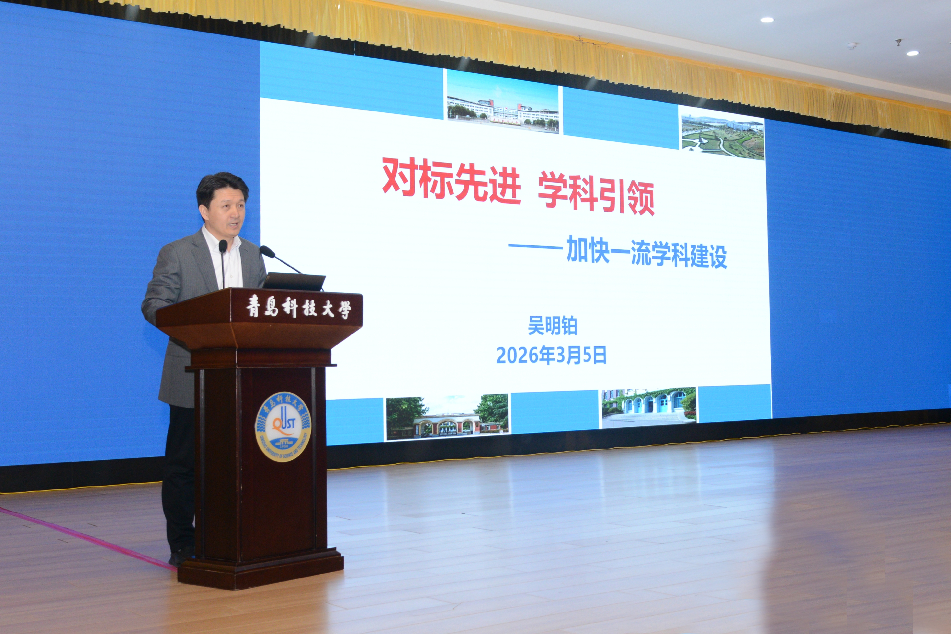 党委常委、副校长吴明铂以《对标先进 学科引领——加快一流学科建设》为题,从“十五五”发展规划编制、纵深推进一流学科建设两大方面,就学校“十五五”发展规划编制的背景过程、体系框架、实施评估、工作要求等进行了详细说明,并对“冲一流”的形势、攻坚方向等进行了深入分析,明确了今年学校凝心聚力“冲一流”攻坚的8项重点工作举措。