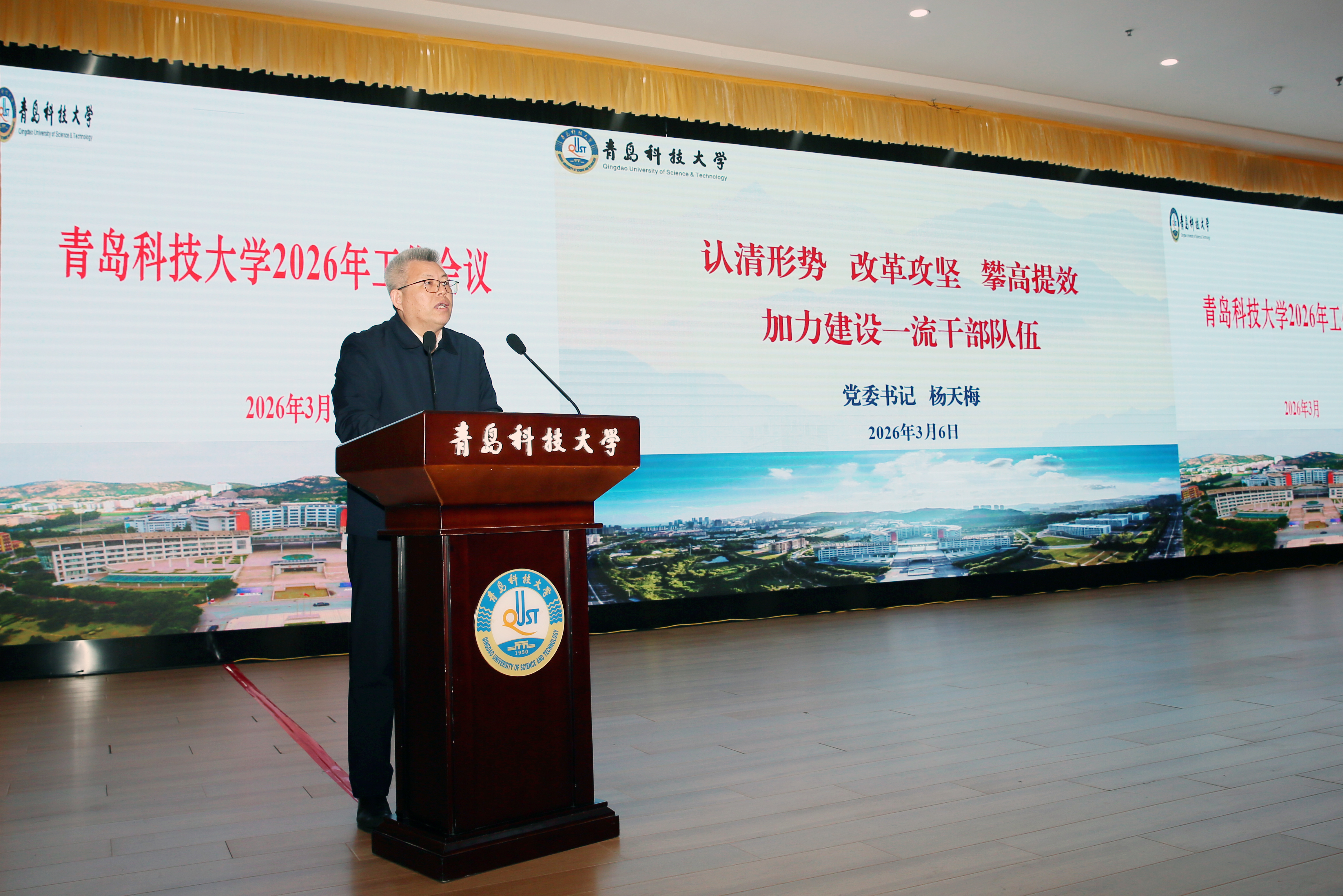 6日上午,党委书记杨天梅作了题为《认清形势 改革攻坚 攀高提效 加力建设一流干部队伍》的总结讲话,肯定了学校2025年取得的成绩,并就2026年及“十五五”期间学校重点工作谈了四点意见。一是深刻把握高等教育面临的新形势新任务,切实增强改革创新的紧迫感使命感。他从世情、国情、社情、校情分析了当前高等教育形势以及面临的机遇和挑战。他说,青科大的发展,应该由培养人才主业转为既注重人才培养,更要服务国家发展所需;科研应该由教师自由探索转为有组织科研,服务产业需要;教师应该由知识传授转为知识创造。要认清高校发展的价值逻辑,紧紧抓住师资队伍质量、学生质量这两个高质量发展的关键所在,在人才强校上久久为功,在立德树人上精耕细作,真正走出一条属于青科大的高质量发展之路。二是科学编制“十五五”发展规划,以“攀高、提效”工作主题引领学校高质量发展。要以编制“十五五”规划为抓手,前瞻性思考、全局性谋划、战略性布局、整体性推进未来5年甚至10年学校事业发展。“十五五”期间,要以“攀高、提效”为工作主题,实现化工学科进入一流学科目标。“攀高”就是要对照一流学科需要,在思想意识、核心指标、管理制度、干部能力四个维度上同步发力。“提效”就是要向改革要效益,在人才队伍、人才培养、橡胶特色、编制、校外资源利用、评价六个维度上同步发力。三是聚焦重点任务攻坚,以点带面推动全局工作全面提质提效。要深刻把握高等教育扩容提质任务要求,积极扩增招生规模,加快推动特色发展,全力攻坚学科突破。要加快学科专业优化调整,常态化开展专业评估,把有限的专业资源向优势特色和急需紧缺领域集聚。要深化学校综合改革,完善绩效“亩产效益”评价机制,建立开源节流激励约束机制,强化人工智能赋能教育教学改革机制。四是加快提升干部能力素质,为实现学校一流目标提供组织保障。学校要发展,关键在人。要强化教育培训、制度规范、考核评价、管理监督、选用导向、担当尽责等六项工作,持续加强干部队伍建设。希望广大干部发扬斗争精神,敢于直面历史遗留问题和改革发展中的深层次矛盾,敢于担事、善于干事、能于成事。