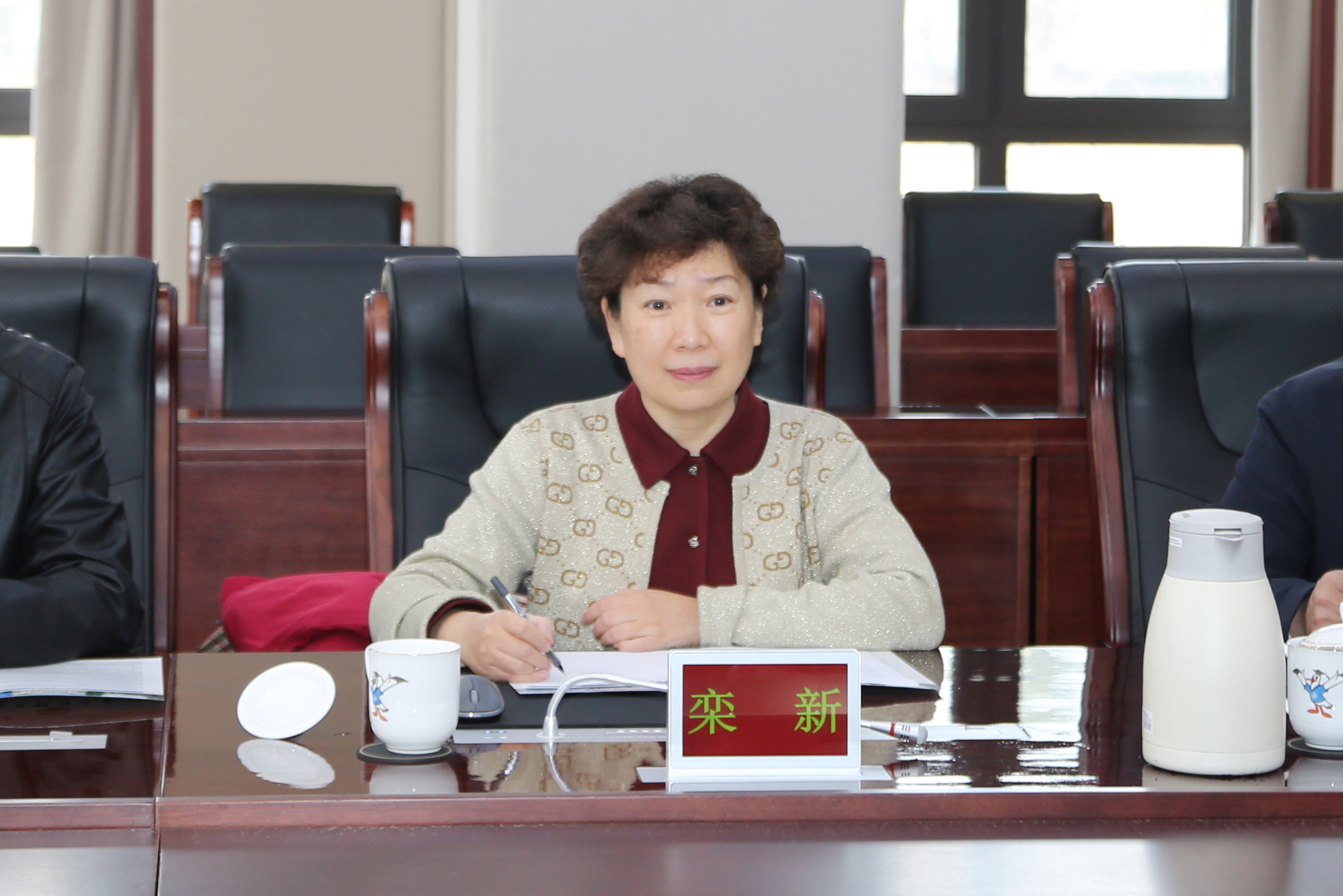 沈文青代表学校欢迎栾新一行的到来,并简要介绍了学校的历史沿革、办学特色、学科优势、政产学研融合发展等方面的基本情况,她表示,学校将继续发挥特色优势,扎实有序推进各项任务落地见效,更好地服务区域经济社会高质量发展。
